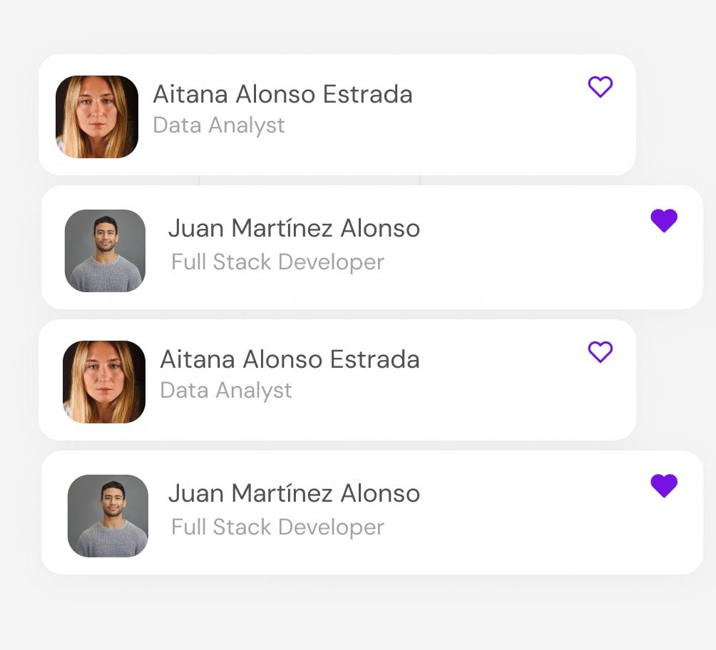 Nuestro equipo de recruiters, junto con la IA, identifica perfiles que encajan con tu búsqueda.